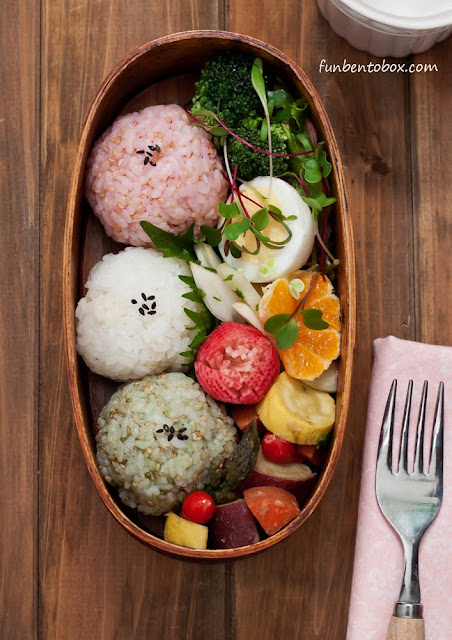 For the rice balls, I cut a piece of nori seaweed with a decorative paper cutter from DAISO.